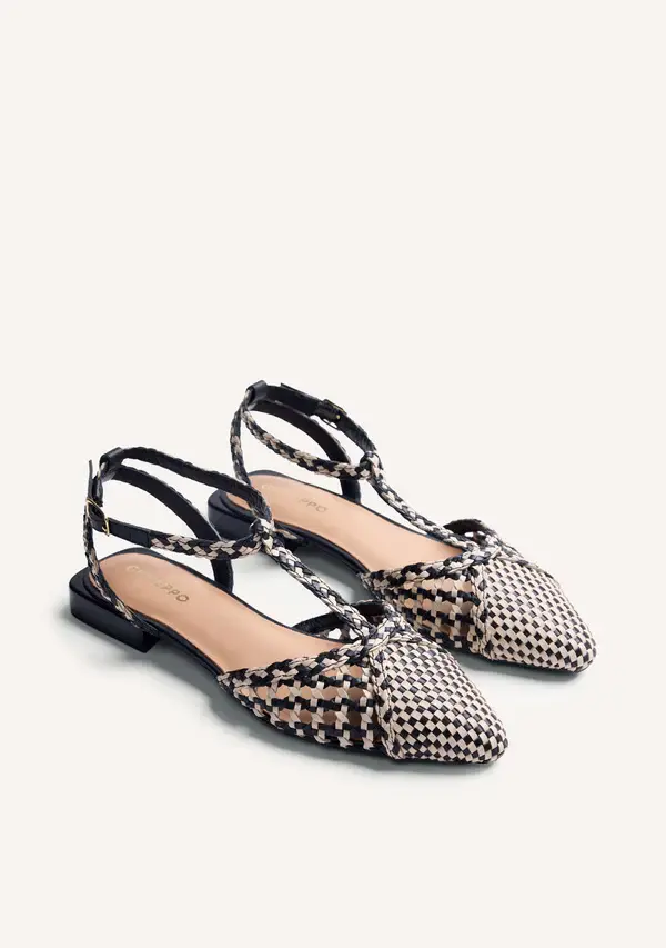 Sandali con strisce sottili intrecciate in pelle color piombo. Chiusura alla caviglia con fibbia. Sottopiede in pelle con imbottitura in lattice dal tatto morbido per garantire un maggiore comfort. Suola di pelle conciata in concerie che seguono un protocollo di concia più sostenibile secondo gli standard del Leather Working Group. Suola flessibile. Un basic che non passa di moda stagione dopo stagione.